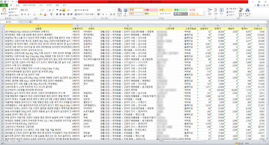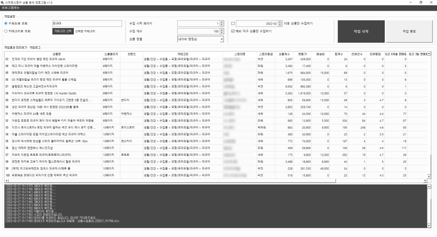 ✔ 원하시는 키워드 혹은 카테고리를 선택해서 조회되는 스마트스토어 상품의 정보가 수집되는 프로그램입니다.