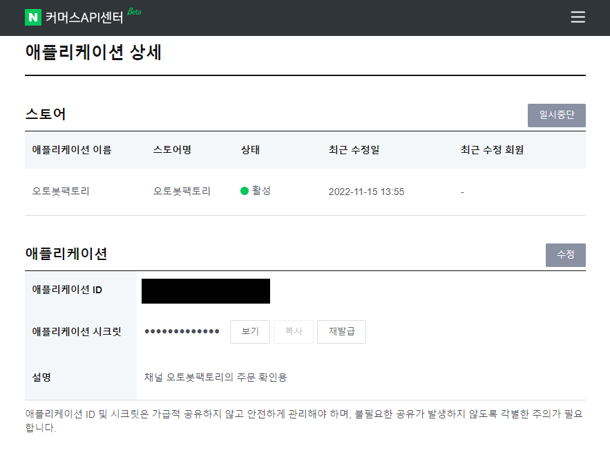 이제 저기 보이는 애플리케이션 ID와 시크릿을 이용해 커머스API 개발을 시작해보자.