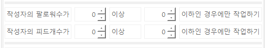 - 작성자의 팔로워수 & 피드 개수 옵션을 사용하시는 경우 부적절한 피드가 너무 많이 나오지 않도록 주의해주세요.