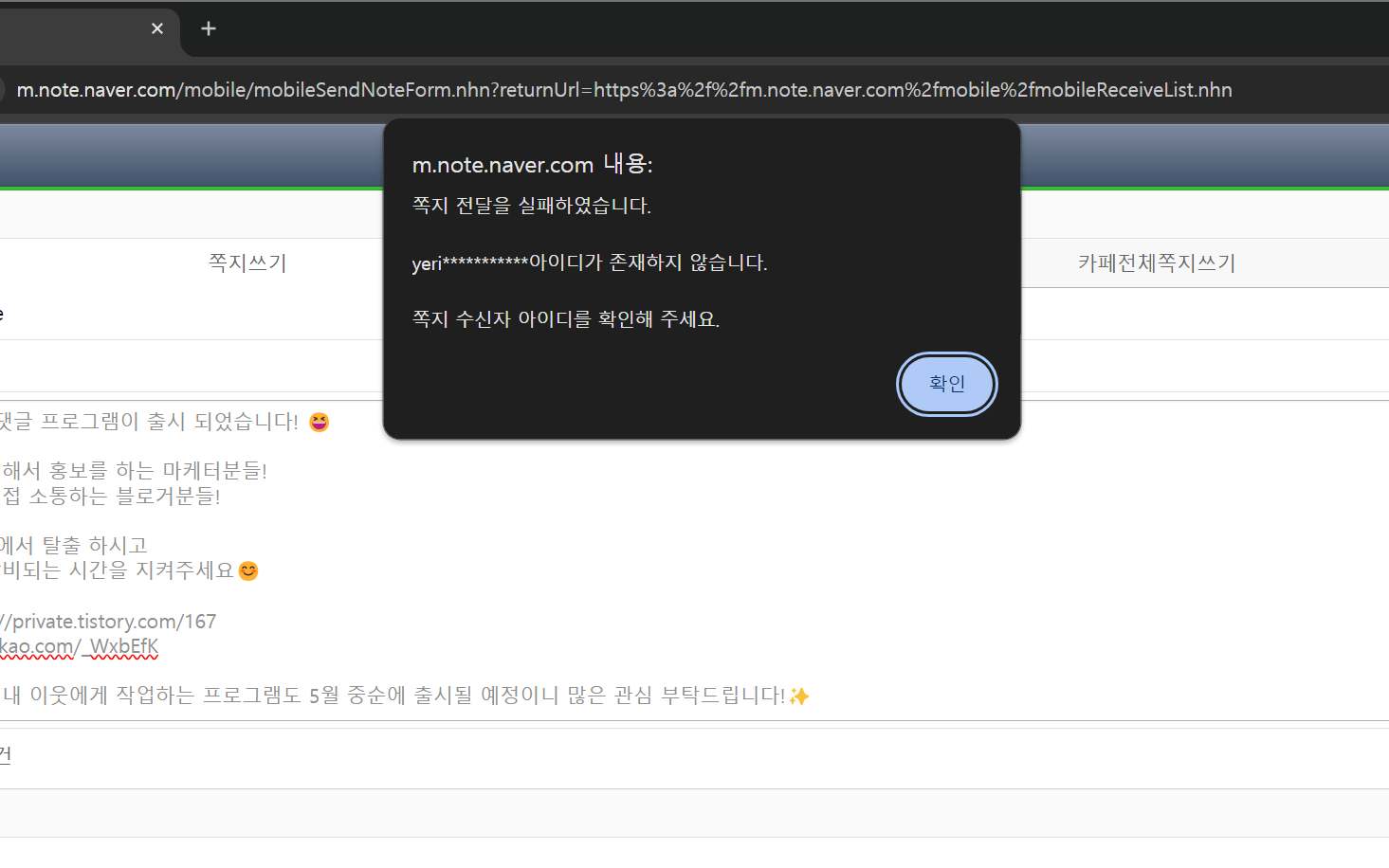 ➡️ 쪽지 발송 프로그램에 대한 문의는 댓글로 남겨주세요.