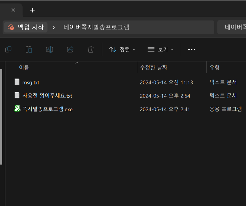 ➡️ 프로그램 폴더에 있는 msg.txt 파일을 열어 원하는 쪽지 내용을 입력해주세요.