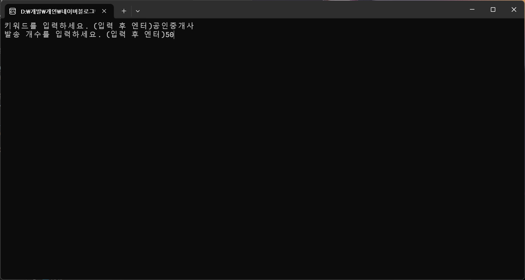➡️ 원하는 키워드와 발송 개수를 입력하세요.
