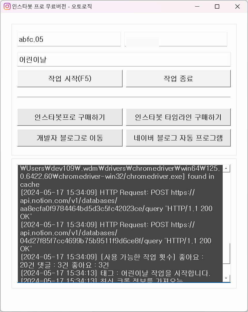 인스타봇프로 무료 버전(체험판)을 배포합니다.