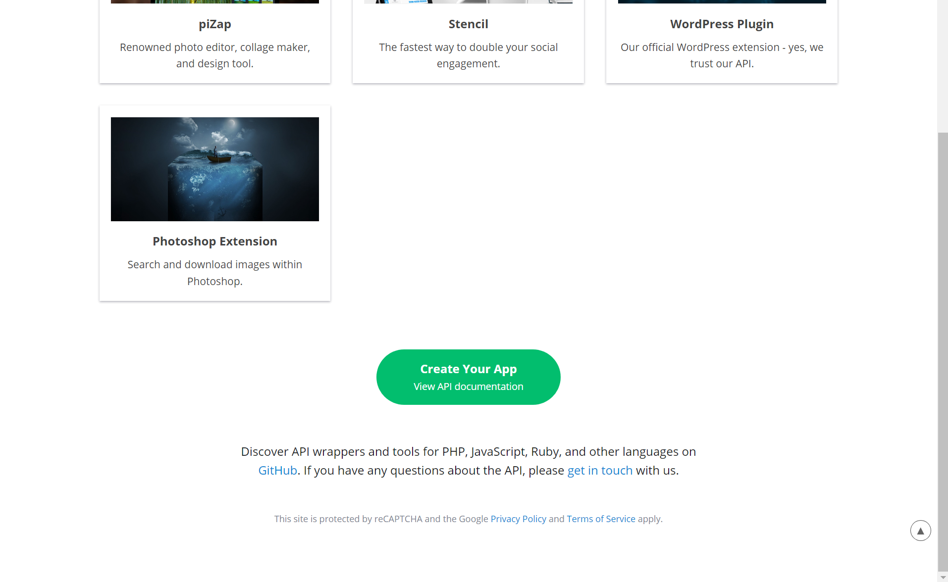 2. API 페이지( https://pixabay.com/ko/service/about/api/ )에 접속해서 화면 맨 아래로 내려간 후 "Create Your App" 버튼을 클릭합니다.