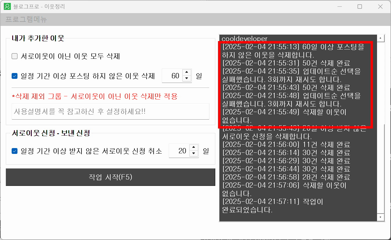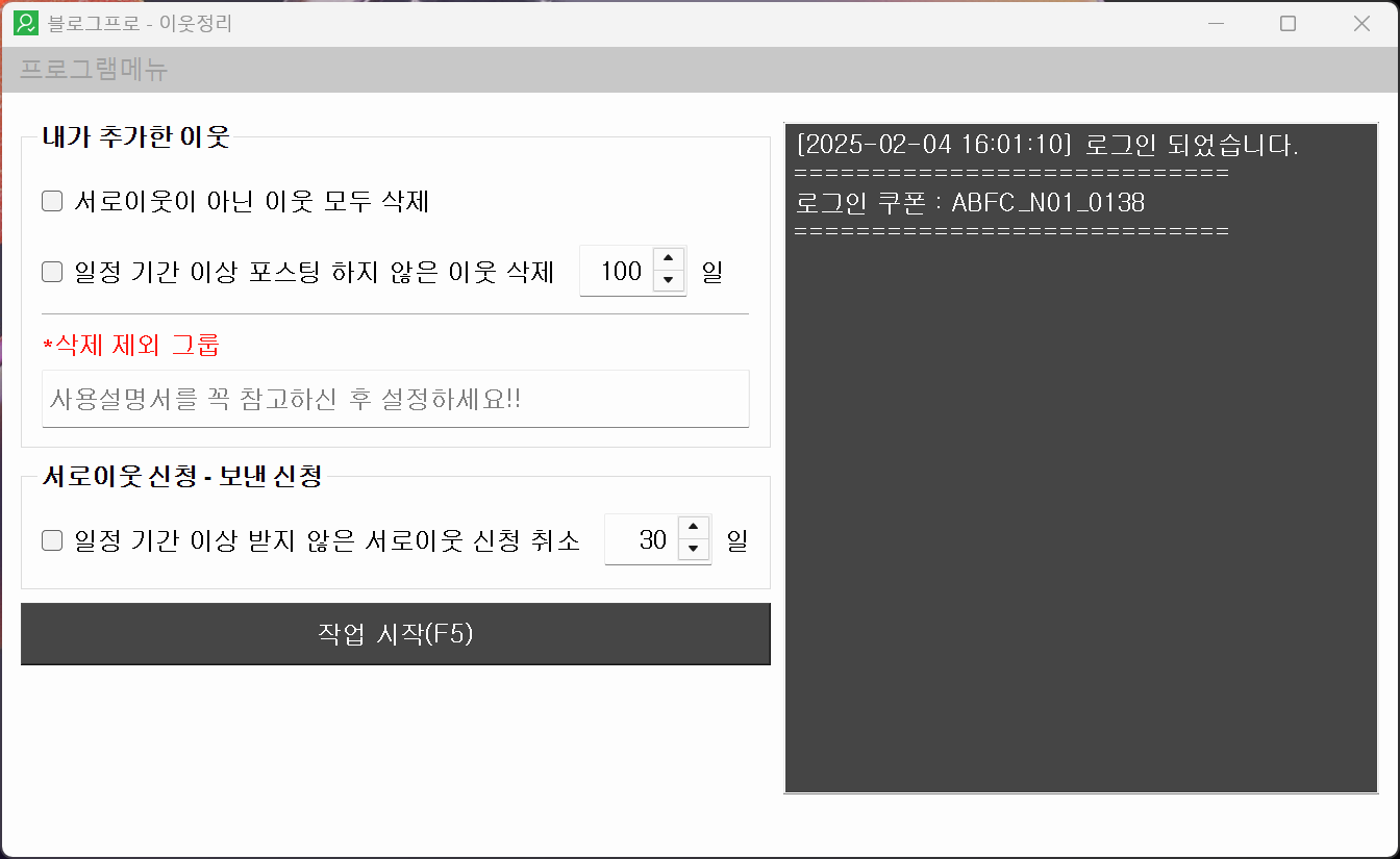 안녕하세요. 블로그프로 사용자분들을 위한 이웃정리 프로그램을 개발했습니다.