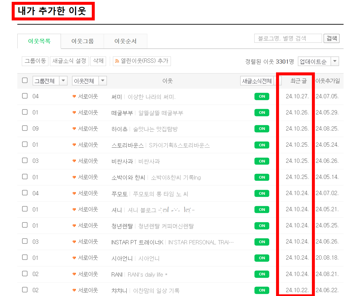 4. 일정 기간 이상 포스팅 하지 않은 이웃 삭제