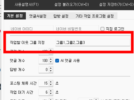 - 마찬가지로 공감 완료 n개 마다 n분 작업 대기 시간도 20~30분 정도로 줄이셔도 됩니다.