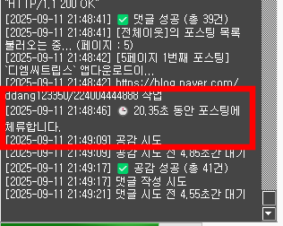 - 지정한 시간 ~ 지정한 시간 * 1.5 사이의 값에서 랜덤으로 포스팅에 체류합니다.