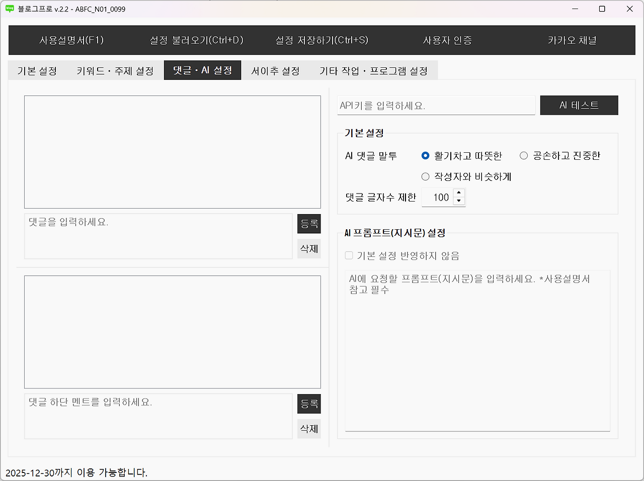 - AI 명령어(프롬프트)를 직접 설정하실 수 있습니다.