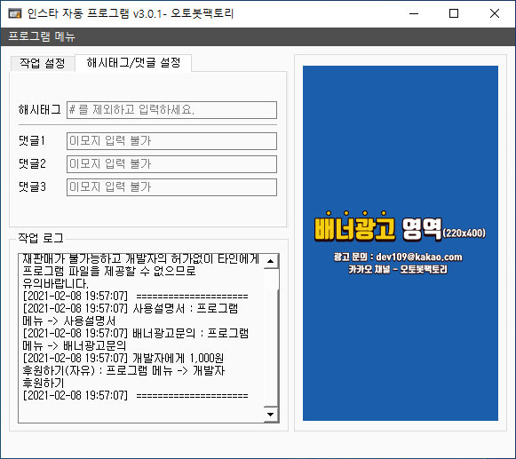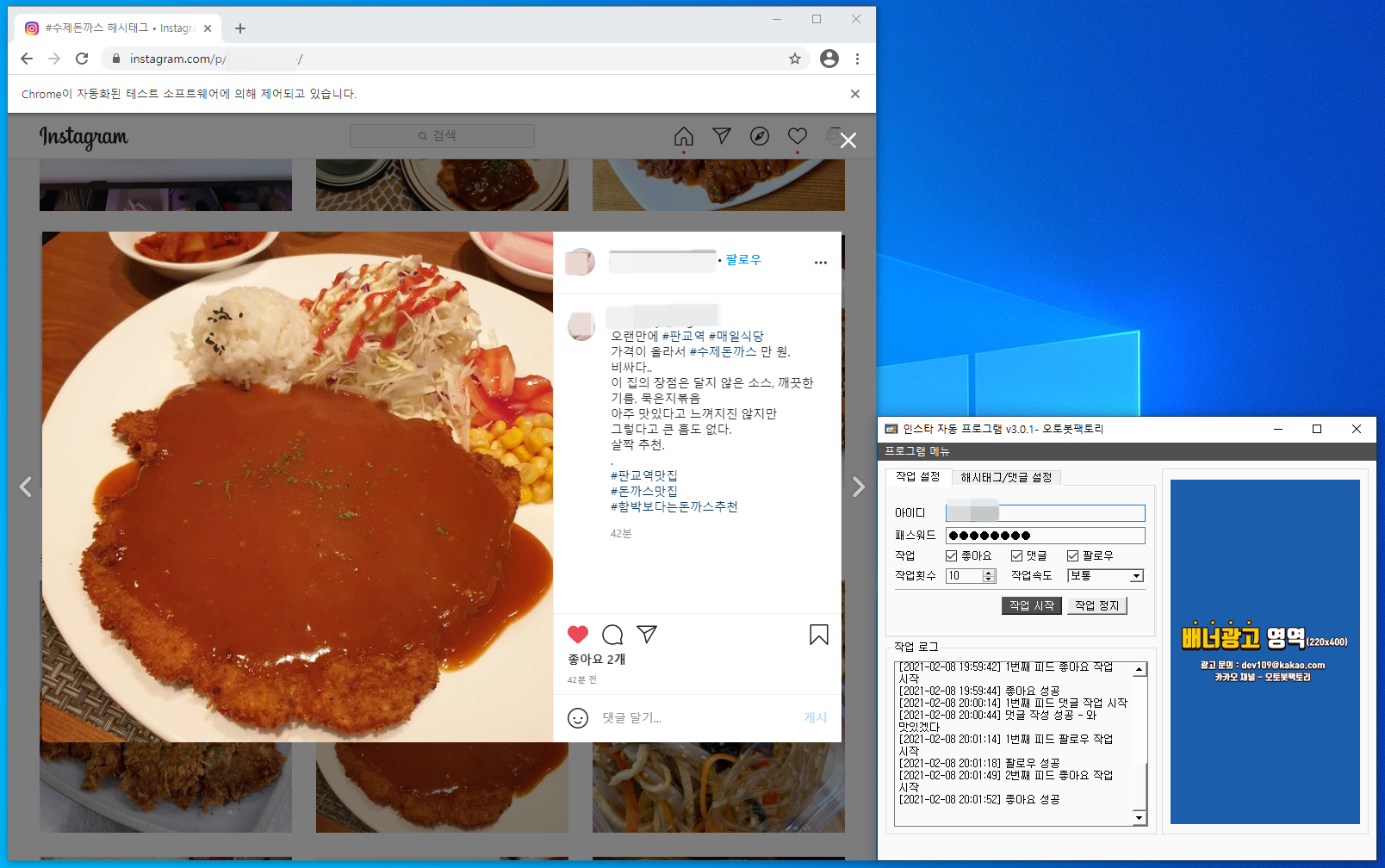 무료 배포 프로그램 2탄! 인스타그램 자동 좋아요, 자동 댓글, 자동 팔로우를 해주는 프로그램입니다.