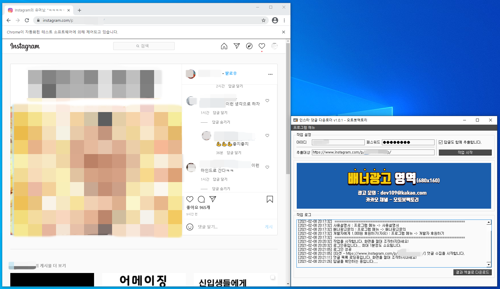 무료 배포 프로그램 4탄! 인스타그램 댓글을 수집해서 엑셀 파일로 다운로드 받을 수 있는 프로그램입니다.