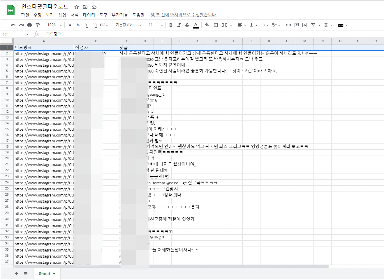 인스타그램 댓글 수집해드립니다. (엑셀 or csv 택)